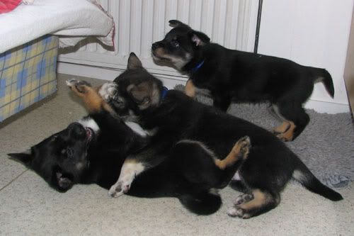 22.03.2009 Ransu, Voima ja Tirri riehumassa. [© Pirkko Vesterinen]